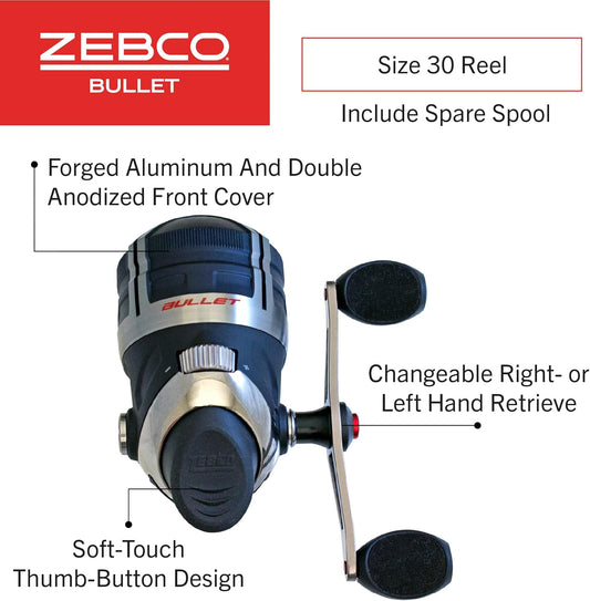 Bullet Spincast Fishing Reel, Size 30 Reel, Fast 29.6 Inches per Turn, Gripem All-Weather Handle Knobs, Pre-Spooled with 10-Pound Fishing Line, Black (2017)