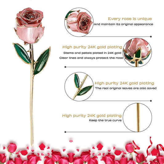 Birthday Gifts 24K Gold Rose, Gold Plated Rose Dipped Rose Everlasting Long Stem Real Rose, Rose Flower Gifts for Valentine'S Day/Christmas/Graduation/Best for Her,Mom,Wife,Women
