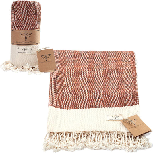 Herringbone Series Throw Blanket, 50X60 Inch, Outdoor Blankets, Throws and Blankets for Couch, Sofa, Bed, Chair, Beach Picnic, Travel Boho Turkish Blanket Throw, Orange